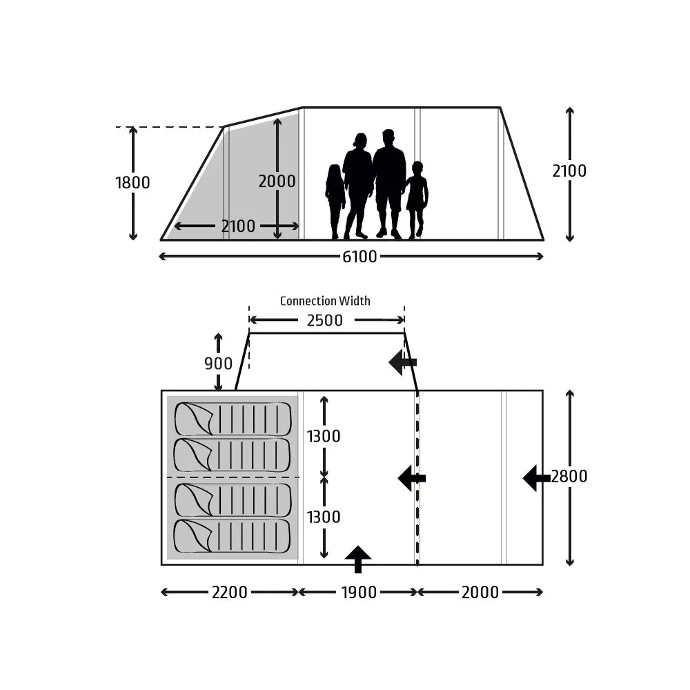 Vorzelt: 610 x 280 x 210 cm (BxTxH)