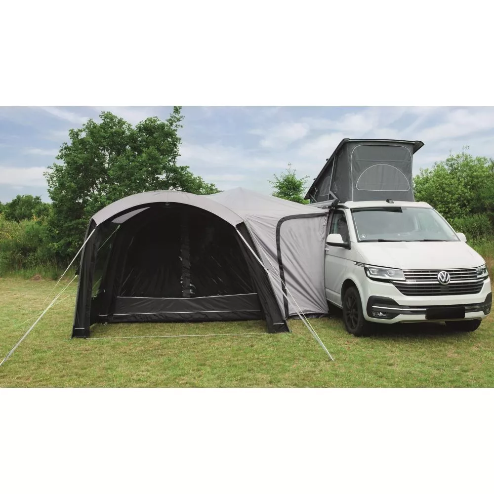 Das kompakte und aufblasbare Busvorzelt Outwell Jonesville 290SA Flex stellst du parallel zu deinem Fahrzeug auf und kannst so die Stellfläche ideal nutzen. Dank der abnehmbaren Schleuse kannst du selbst entscheiden, in welcher Richtung du dein Fahrzeug neben dem Vorzelt platzierst.
