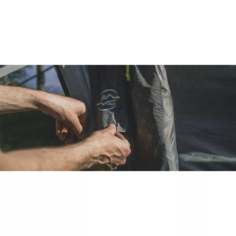 Outwell Sewn-in Ground System: Eingenähter Zeltboden hält Zugluft, Insekten, Schmutz und Wasser bestmöglich aus dem Zelt fern. Ist der Zeltboden fest in das Zelt integriert, bietet es vom Boden bis zur Decke Allwetterschutz