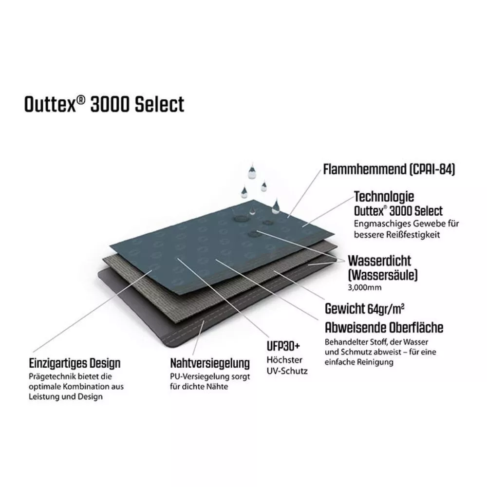 Outtex 3000 Select – strapazierfähiges, hochwertiges Aussenzelt-Material aus reinem Polyester