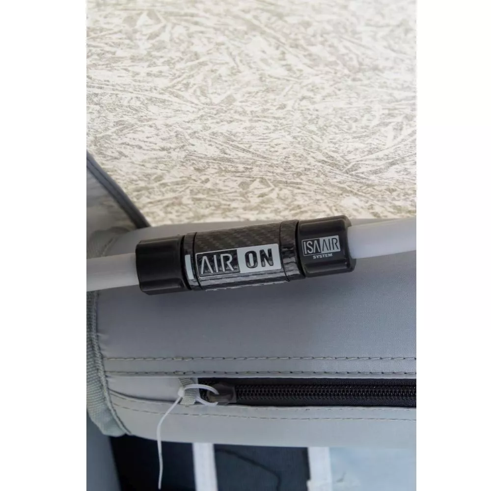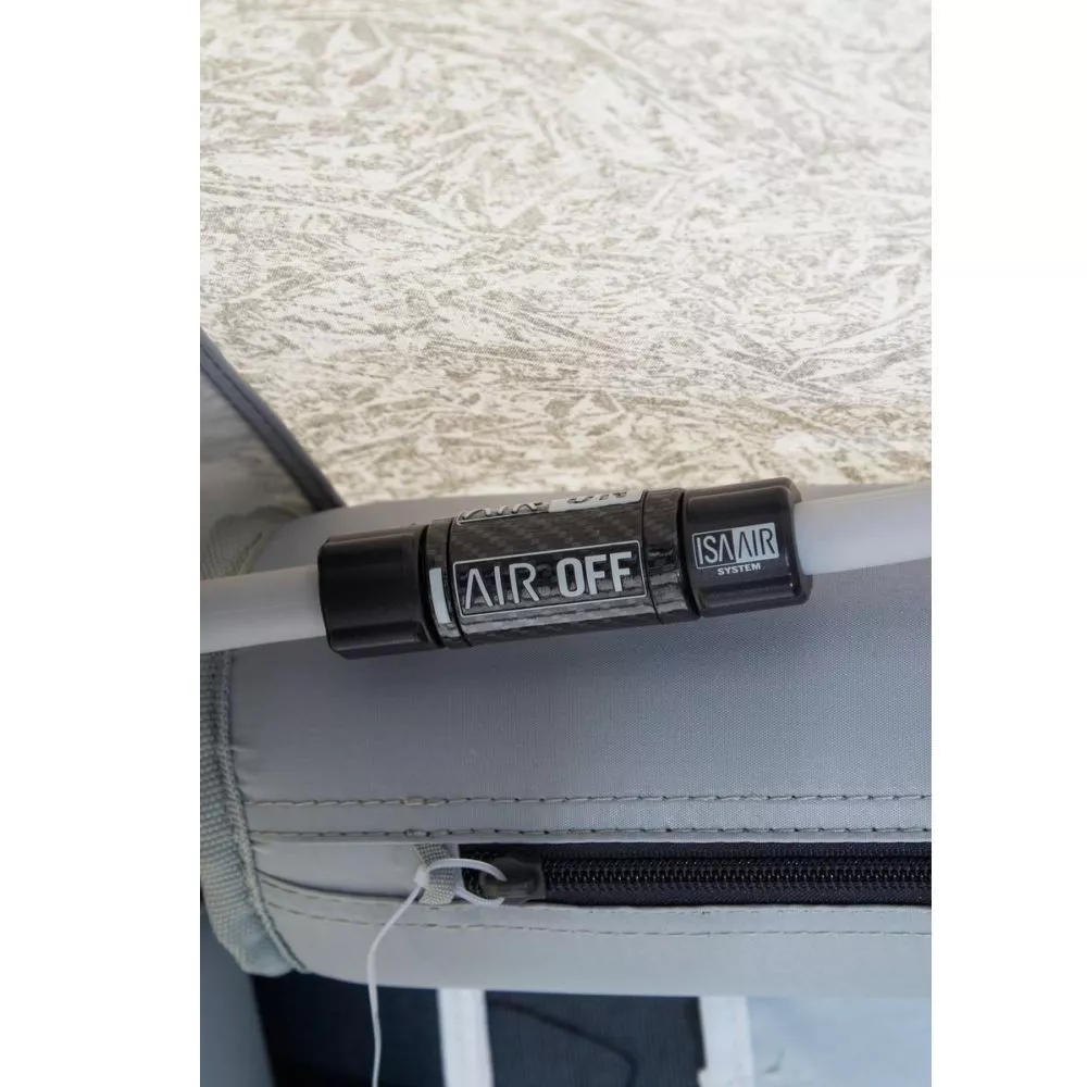 Das speziell entwickelte IsaAir System ist 3-lagig aufgebaut, um den eigentlichen Luftschlauch zu schützen. Schliesse die mitgelieferte Hochleistungspumpe an und befülle dein Vorzelt an nur einem einzigen Aufblaspunkt. Alle Schlauchelemente sind mit einem Kupplungssystem und einem Verbindungsventil verbunden. Am Ventil selbst zeigt ein einfacher On/Off-Schalter eindeutig, ob die Verbindung zwischen zwei Schläuchen zurzeit geöffnet oder geschlossen ist. Wenn du einen einzelnen Schlauch auf beiden Seiten mit der „Off“-Stellung verriegelst, kann dieser, wenn notwendig, ausgebaut werden, ohne dass das restliche System an Luft verliert. So bist du immer auf der sicheren Seite!