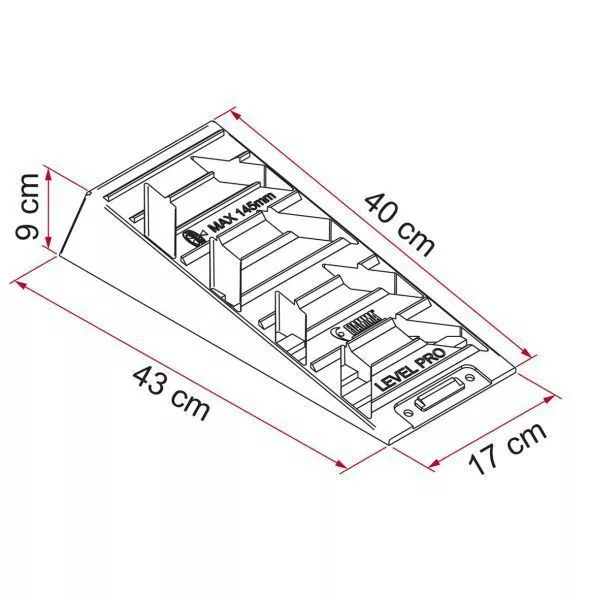 Der Auffahrkeil Fiamma Level Pro ist ein kompakter Auffahrkeil, ideal für Wohnwagen und Vans. Die Auffahrkeile Fiamma Level Pro überzeugen: denn sie sind leicht, widerstandsfähig und rutschfest und verhindern zuverlässig die Nachteile einer Schräglage. Sie verfügen über eine rutschfeste, an den Reifen haftende Oberfläche, sind korrosionsfrei, uv-beständig und schnell zu reinigen.