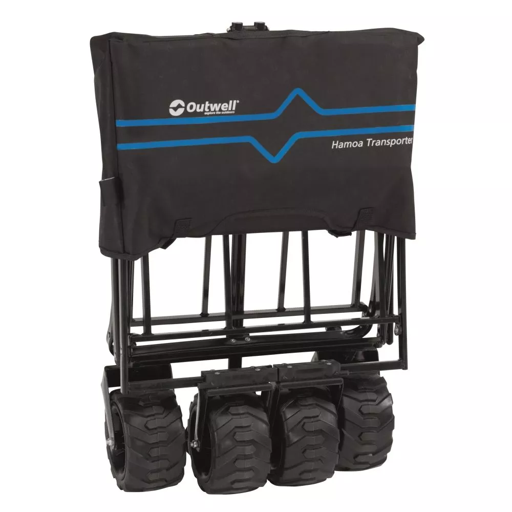 Der Outwell Hamoa Transportwagen ist sekundenschnell geöffnet und zusammengefaltet. Gefertigt aus stabilem Stahl, mit hochwertigen Radlagern und breiten, pannensicheren und geländegängigen PU-Rädern, ist der Bollerwagen für ein langes Transporterleben ausgerüstet. Im Inneren ist der faltbare Transporter mit einem widerstandsfähigen schwarzen Futter und Organizer-Tasche ausgestattet. Eine lange Deichsel sorgt für einfaches Manövrieren. Der Hamoa Camping-Transportwagen von Outwell ist eine praktische und solide Lösung, um die Ausrüstung sicher und schnell transportieren zu können – auf dem Campingplatz, am Strand, im Park zum Picknick und bei vielen anderen Ausflügen. Wird er nicht gebraucht, kann er zusammengeklappt mit dem Verriegelungsmechanismus einfach eingerastet werden und benötigt nicht viel Platz. Eine Tragetasche für eine einfache Aufbewahrung ist im Lieferumfang enthalten.