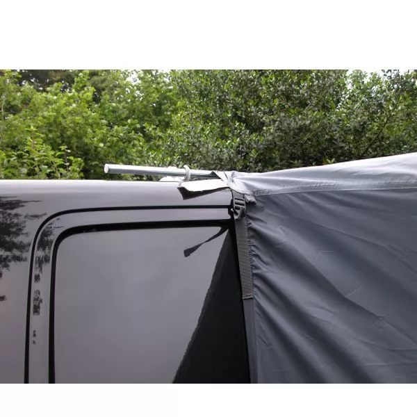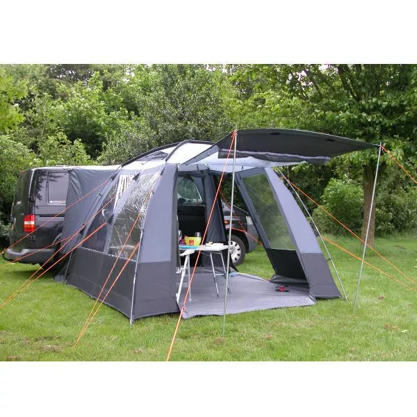 Das Busvorzelt Eurotrail Hockenheim ist ein freistehendes Vorzelt mit Boden und vielen Fenstern. Es verfügt über einen Haupteingang und einen zusätzlichen Seiteneingang. Das Buszelt Hockenheim aus dem Hause Eurotrail hat viele abschliessbare Klarsichtfenster und zahlreiche Belüftungsmöglichkeiten. Die Befestigung am Bus erfolgt mit Schleusenstab (nicht inklusive). Es eignet sich für eine Anschlusshöhe bis 220 cm.
