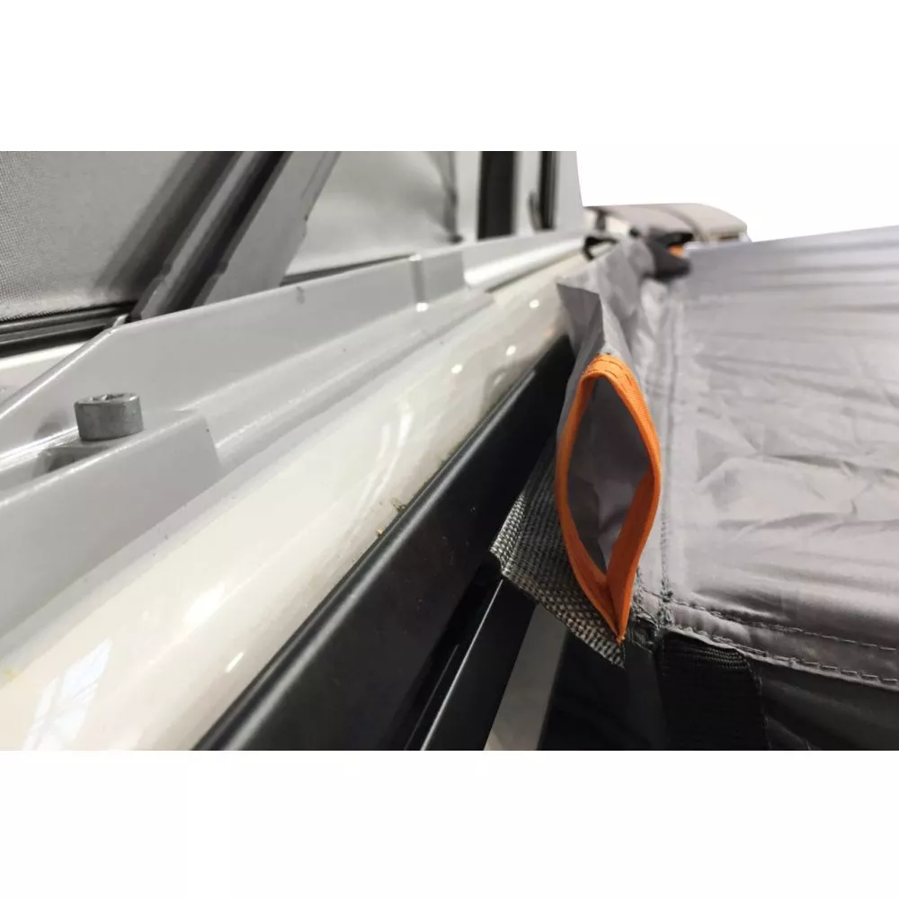 Das leichte Busvorzelt Pisa ist ein Leichtgewicht-Teilvorzelt für die Befestigung am Campingbus. Dieses Buszelt hat nur eine Bogenstange und ist deshalb einfach und schnell aufzubauen. Die Vorderwand und die beiden Seitenwände können mit einem Reissverschluss komplette herausgenommen werden. So wird das Vorzelt in ein Schatten spendendes Bus-Sonnensegel verwandelt. Alle Fenster sind aus Klarsichtfolien und mit Abdeckungen versehen. Das feste Vordach schützt vor schlechtem Wetter und bietet einen Schattenplatz. Das Pisa ist optimal für Wochenendreisen und Kurzurlaube. Einfache Befestigung am Autobus mit Dachstange und Schnalle (im Lieferumfang), mit Klettband an der Dachrailing oder mit dem 7 mm Keder am Multirail. Im Lieferumfang enthalten sind: Dachstange und Schnalle, Heringe, Abspannleinen, und eine praktische Trage- und Aufbewahrungstasche.