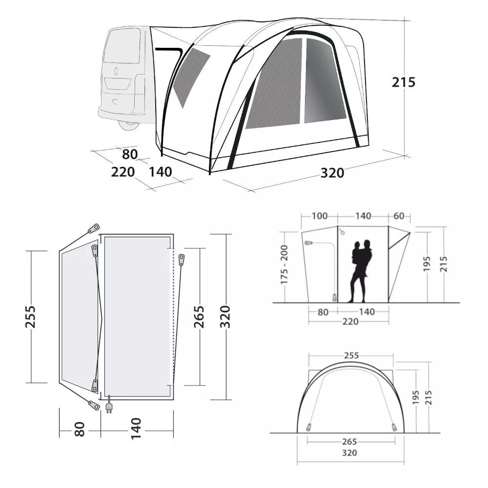 für Camping-Busse und Minivans mit einer Anschlusshöhe von 175-200 cm