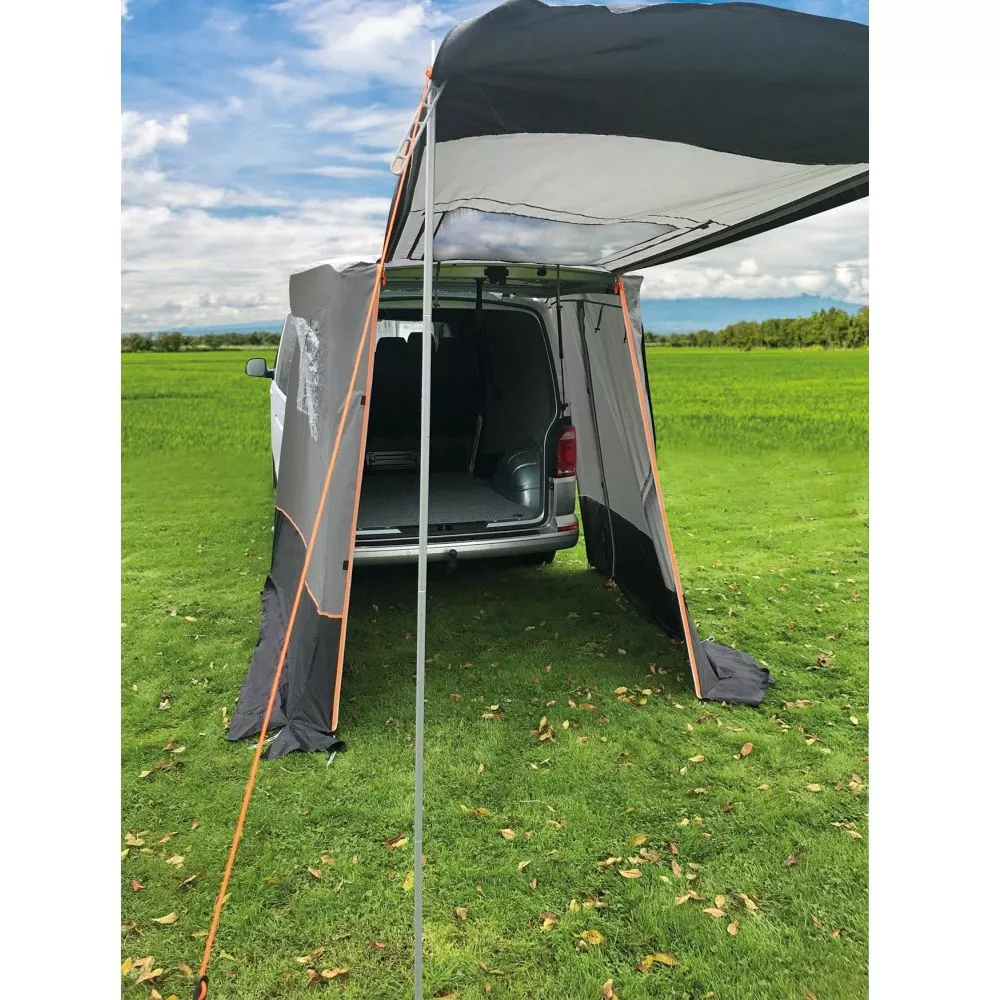 Das Eurotrail Offroad T5/T6 Heckzelt bietet Platz für Fahrräder und Gepäck und eignet sich perfekt zum Duschen, Umziehen, Kochen oder Schlafen. Die grossen Fenster in der Heckklappe sorgen für Licht und Belüftung und können geschlossen werden. Das Eurotrail Offroad Heckzelt ist mit einer hinteren und einer seitlichen Türe ausgestattet. Die Lieferung erfolgt inklusive einer praktischen Tragetasche und Vordachstangen, um die Eingangstür als Sonnendach verwenden zu können.
