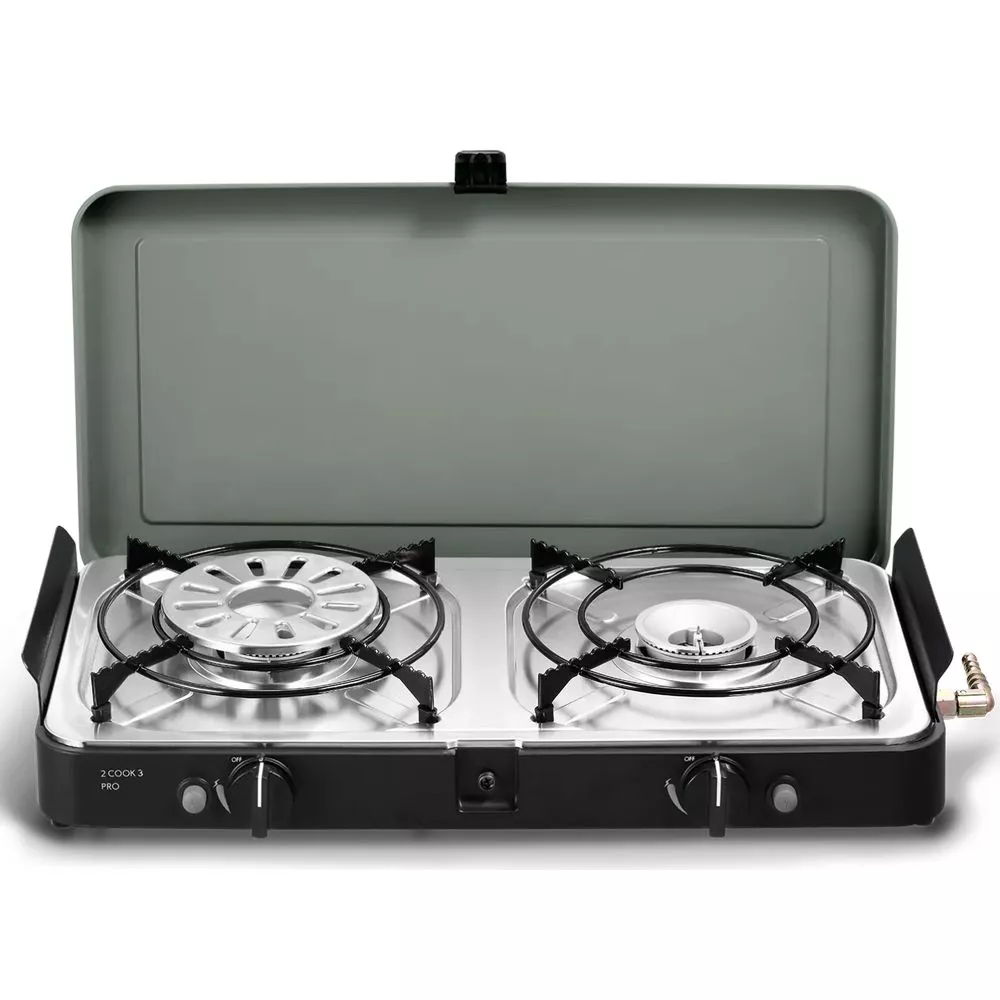 Entdecke die Freiheit des Kochens unter freiem Himmel mit dem 2 Cook 3 Pro Stove von Cadac Dometic. Der tragbare Gaskocher bietet dir zwei unabhängige Kochsteiten, die dank der Piezozündung einfach und sicher gezündet werden können.