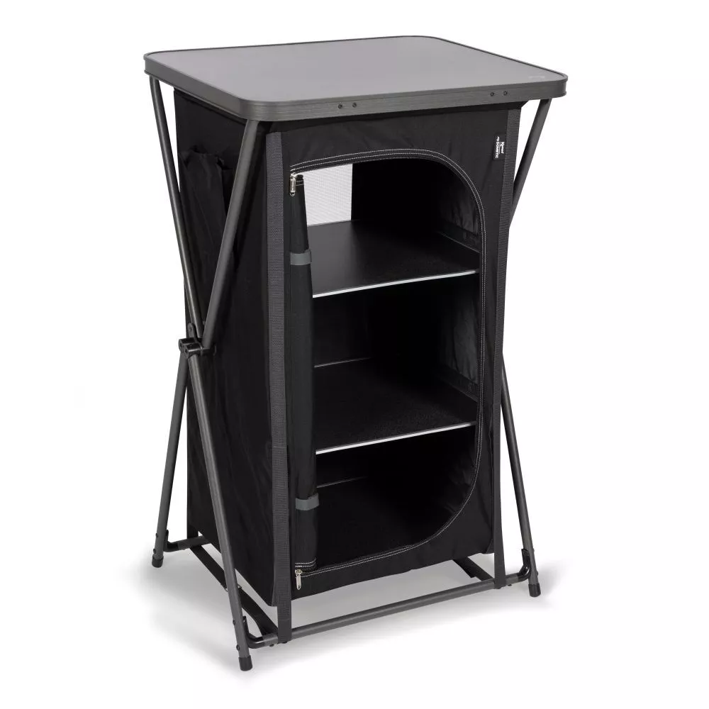 Der Zeltschrank Kampa Amber mit drei innenliegenden Ablagefächern. Mit XPRESS-Schnellaufbausystem, um keine Zeit mit dem Möbelaufbau zu verschwenden.