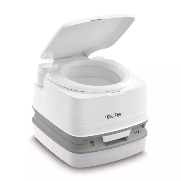 Das Camping-WC Thetford Porta Potti 345 ist eine mobile Frischwassertoilette. Die mobile Toilette verfügt über eine integrierte Deckelverriegelung, eine Aussparung zum Öffnen des Deckels, einen optimierten Schiebergriff, sowie einen bequemen Griff für den Fäkalientank. Der Stopper am Fäkalientank hält den Entleerungsstutzen in seiner Stellung fest und macht das Wiedereinsetzen der beiden Tanks noch einfacher. Die Thetford Porta Potti 345 wird mit einer Kolbenpumpe betrieben und überzeugt mit Langlebigkeit und praktischem Gebrauch.