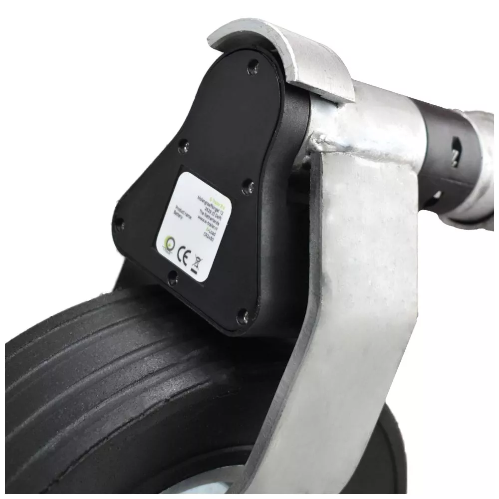 Zur Ermittlung der Stützlast von Wohnwagen hat E-Trailer das E-Load-Modul entwickelt. Es sitzt in einem eigens mitgelieferten Stützrad, das an der Deichsel montiert wird. Nun muss der Camper lediglich den Abstand des Deichsellaufrads zur Kugelkopfkupplung und den Abstand zur Achse des Wohnwagens in der Smartphone-App eingeben. Aus diesen Parametern und dem aktuell auf dem Bugrad lastenden Gewicht ermittelt der E-Load Sensor dann die genaue Stützlast an der Anhängerkupplung.