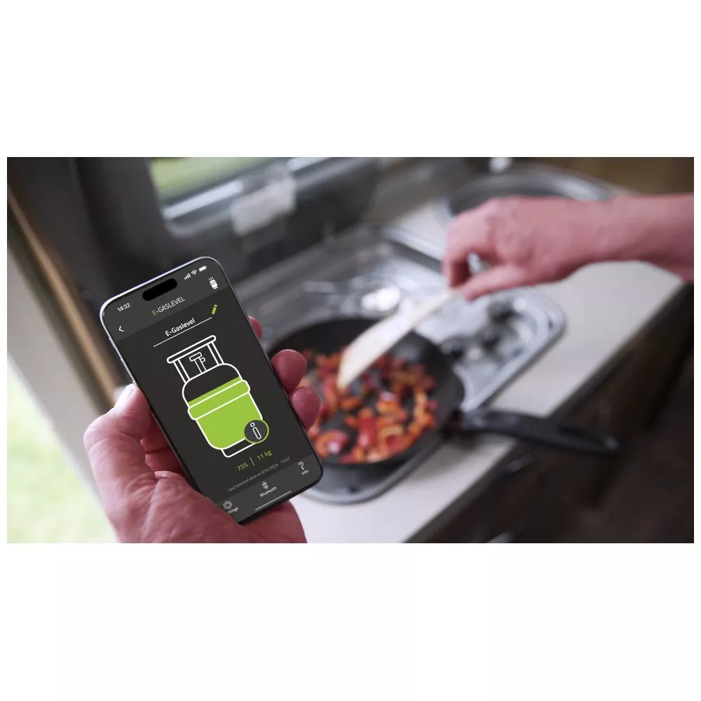 - Füllstand der Gasflasche ist sehr präzise in Prozent und Kilogramm in der Smartphone-App ablesbar