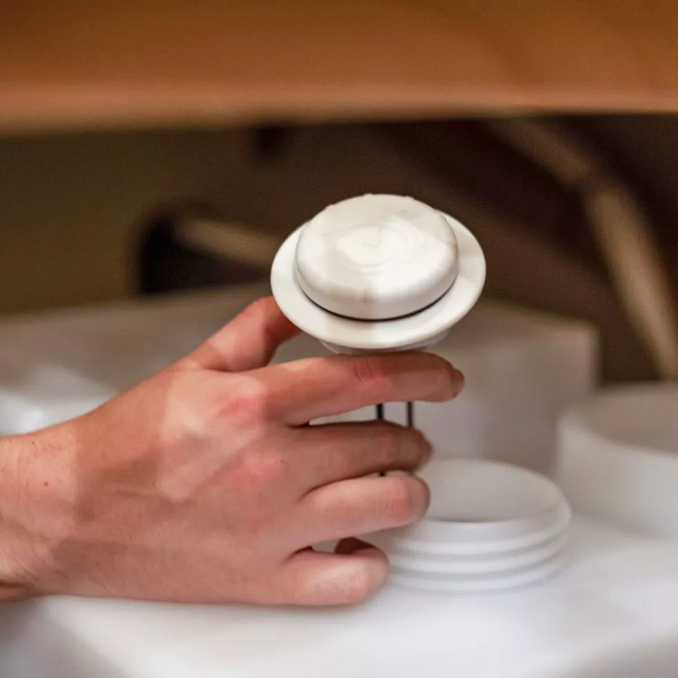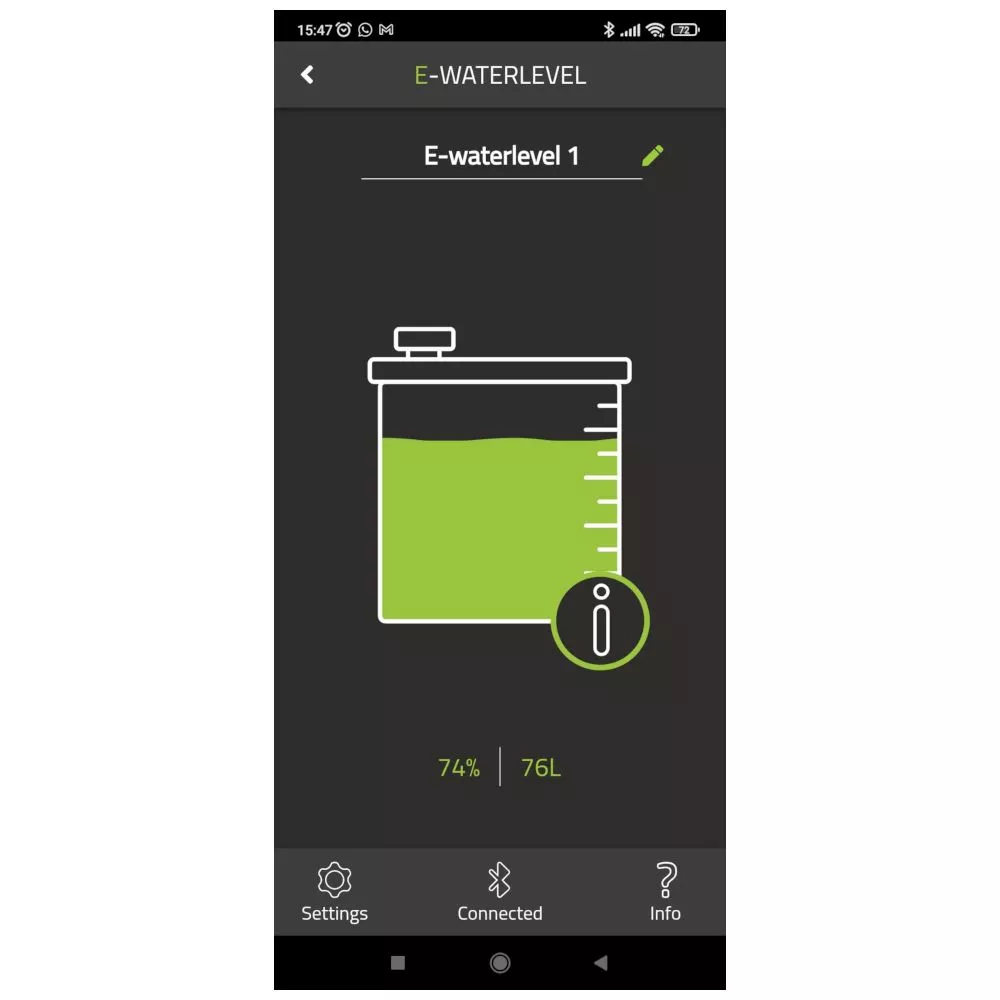 Wie viel Wasser ist noch im Frischwassertank? Die Frage beantwortet das E-Trailer Modul E-Waterlevel. Dazu wird ein eigener Messtab im Frischwassertank montiert, der die Füllmenge nach der Kalibrierung litergenau angibt. Mit dem Smartphone kann so genau die benötigte Menge in den Tank gefüllt werden und ein Überlaufen des Tanks wird verhindert. Bei einem in der App frei zu definierenden Schwellenwert gibt das System eine aktive Wasserstandsmeldung bevor der Tank leer läuft.