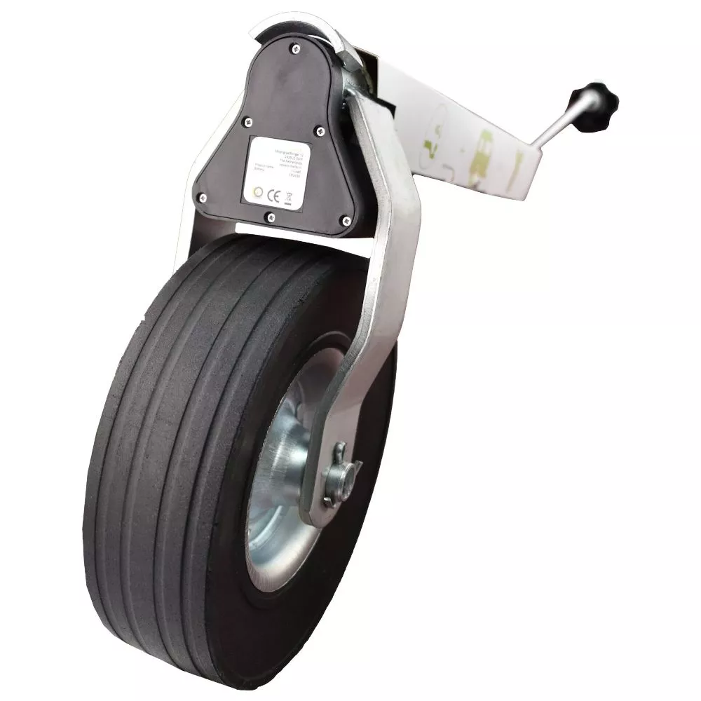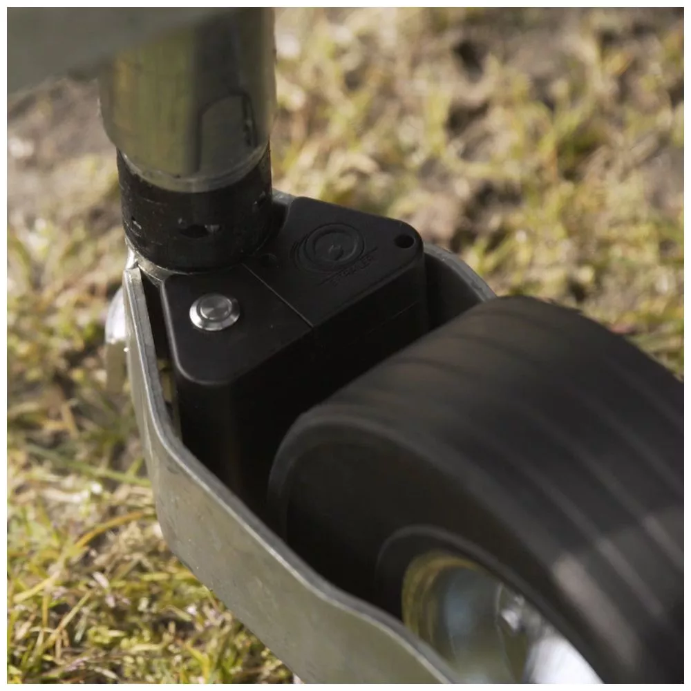 Zur Ermittlung der Stützlast von Wohnwagen hat E-Trailer das E-Load-Modul entwickelt. Es sitzt in einem eigens mitgelieferten Stützrad, das an der Deichsel montiert wird. Nun muss der Camper lediglich den Abstand des Deichsellaufrads zur Kugelkopfkupplung und den Abstand zur Achse des Wohnwagens in der Smartphone-App eingeben. Aus diesen Parametern und dem aktuell auf dem Bugrad lastenden Gewicht ermittelt der E-Load Sensor dann die genaue Stützlast an der Anhängerkupplung.