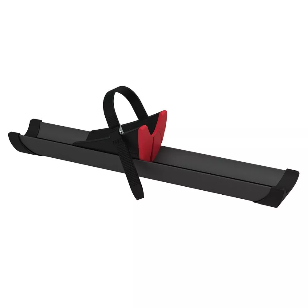die Stütze gegen den Reifen schieben und den Gurt festziehen - nach rechts und links verschiebbar