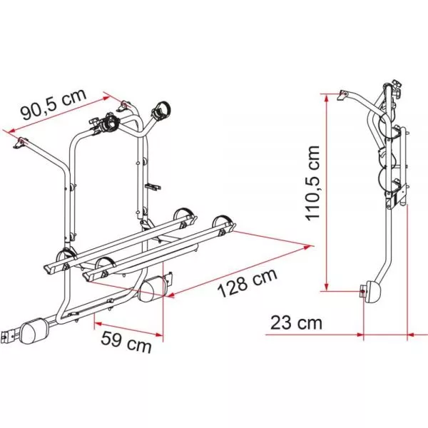Der Fahrradträger bzw. Veloträger Fiamma Carry-Bike Mercedes Viano passt auf den Campingbus Mercedes Viano mit Heckklappe und auf den Campingbus Mercedes Vito für Baujahr 2004 bis 2014. Er lässt sich einfach ohne Bohren mit Hilfe von Halteplatten installieren. Die Halterungen zur Anbringung sind im Lieferumfang enthalten und ermöglichen ein sicheres Befestigen an den Hecktüren. Der Fiamma Carry-Bike Mercedes Viano trägt serienmässig zwei Fahrräder und lässt sich optional auf drei Räder erweitern. Im Lieferumfang enthalten ist ein Nummernschildhalter mit Beleuchtung.