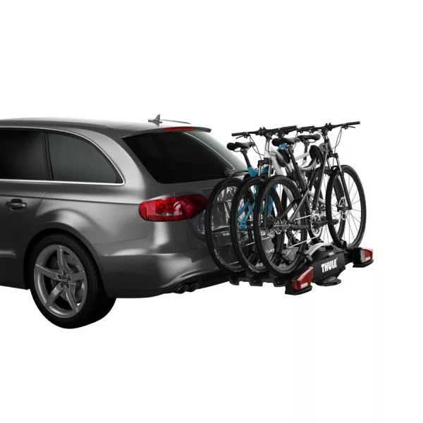 Der Veloträger Thule VeloCompact 3 lässt sich dank der einstellbaren Einhandkupplung einfach auf der Anhängerkupplung Ihres Fahrzeugs befestigen. Dank der integrierten Rückleuchten sind Sie auch bei Dunkelheit sicher unterwegs. Das Beladen ist durch die abnehmbare Fahrradhaltearme sehr bequem, zudem lassen sich die Drehknöpfe abschliessen. Auch Fahrräder mit einem grossen Radstand können transportiert werden, ziehen Sie hierfür einfach die Felgenhalter aus. Befestigt werden die beladenen Velos mit langen Felgenhalterbändern mit Ratschenfunktion. Ihre Fahrräder können Sie am Kupplungs-Fahrradträger sichern, Schlösser sind hierfür im Lieferumfang enthalten. Durch den praktischen Abklappmechanismus mit Fusspedal, haben Sie immer Zugiff zu Ihrem Kofferraum. Wenn Sie den Thule Fahrradträger nicht benötigen, können Sie ihn einfach zusammenfalten und im Kofferraum verstauen.