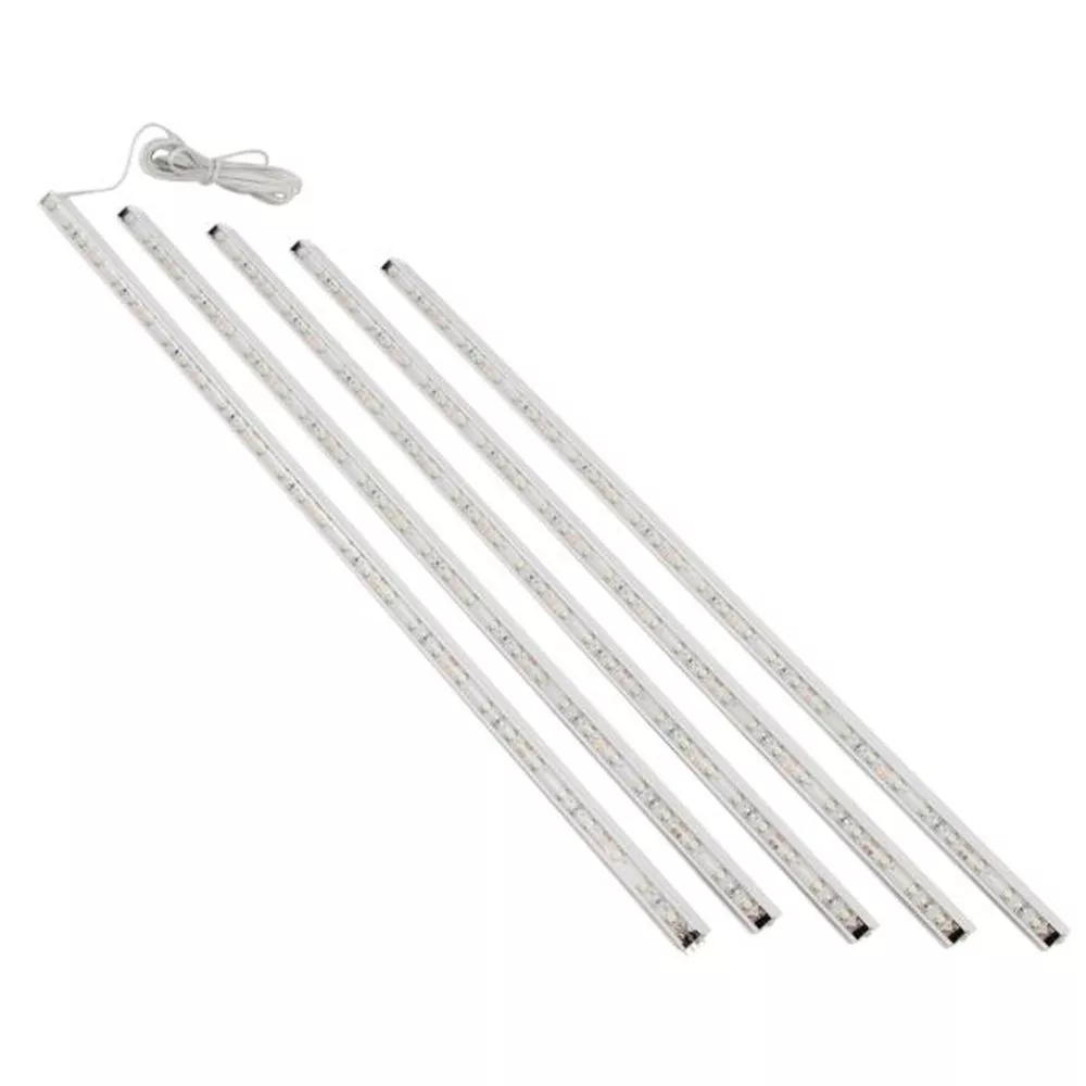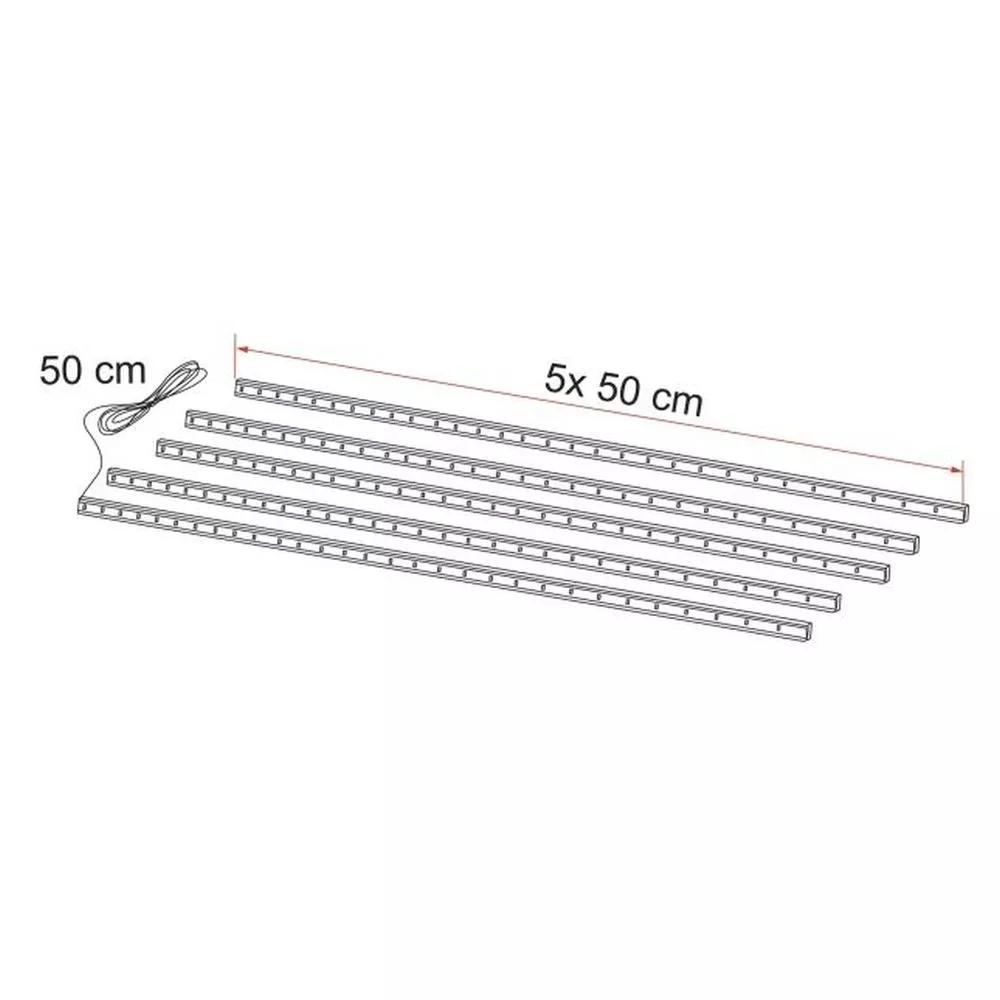 - bestehend aus einer Leiste mit einem Kabel zur Verbindung von 12 V und 5 zusätzlichen Leisten, die durch Druck einrasten. Standardmäßig geliefert in der Länge von 2,5 m