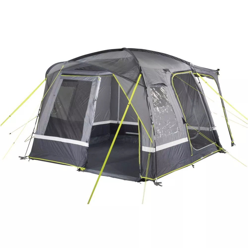 Der Schleusenkanal mit Hohlsaum ist inklusive Schleusen-Stange und angenähtem Doppelkeder-Streifen mit 5,8 / 7,2 mm. Die Anschlusshöhe beträgt 180 – 240 cm. Das Tour kann sowohl als Busvorzelt und als herkömmliches Übernachtungszelt verwendet werden – ein echtes Multitalent!