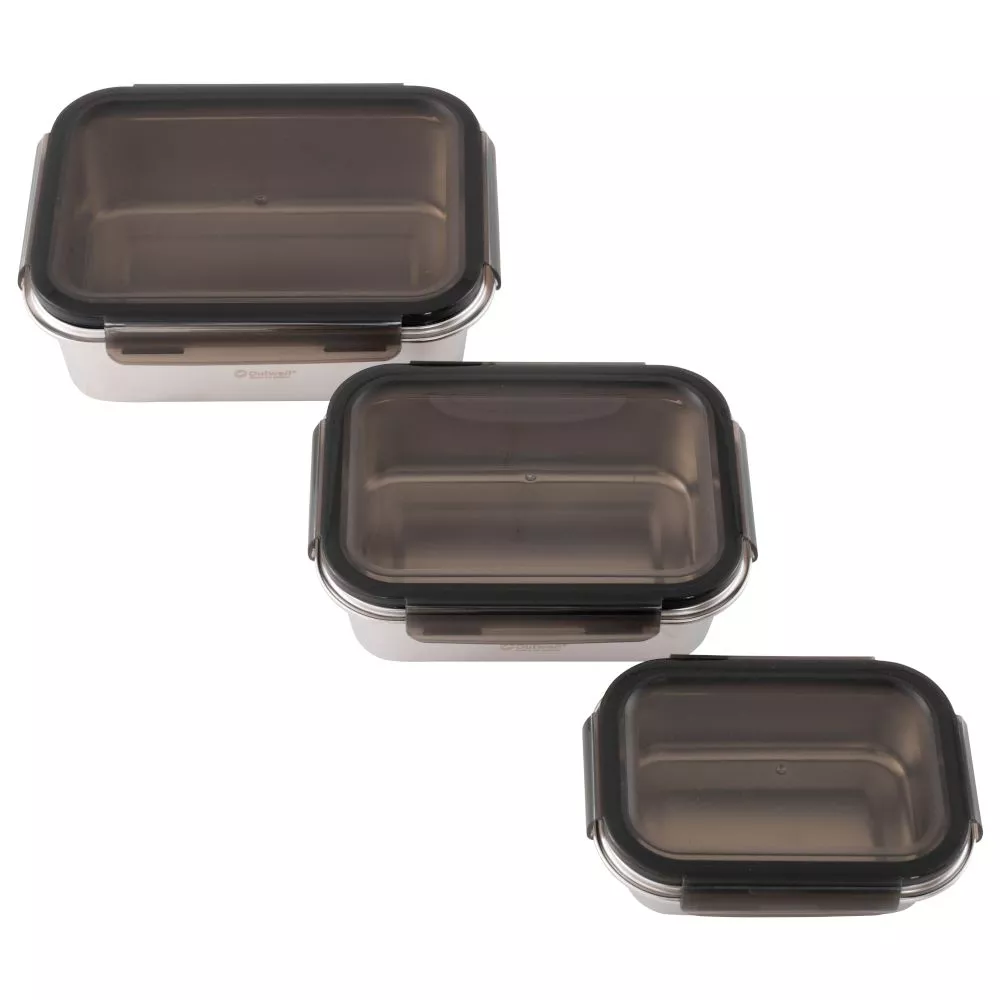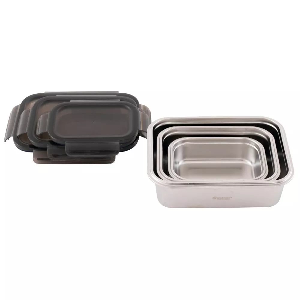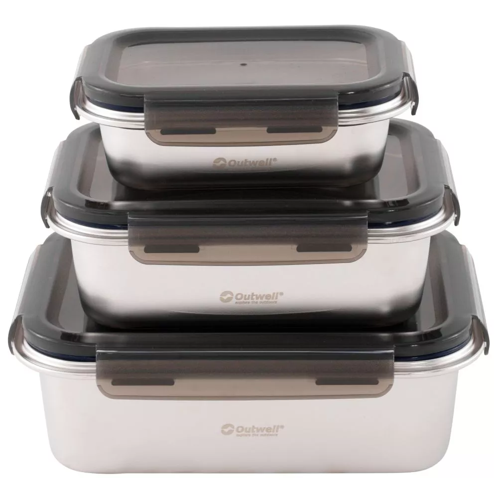 Praktische Edelstahl Frischhaltedosen Outwell Foodbox-Set zur Aufbewahrung und Lagerung von Lebensmitteln im Campingurlaub.