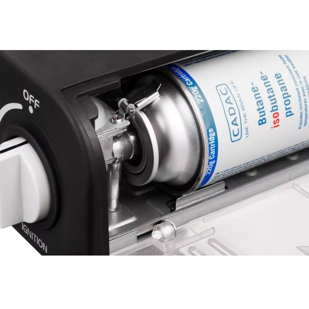 Der tragbare Gasgrill Cadac Dometic Safari Chef 30 Compact wird mit einer handelsüblichen 227g-Bajonettkartusche betrieben. Er kann durch sein kompaktes Mass und seine Leichtigkeit überall mitgenommen werden – Gaskartusche anschliessen und schon kann es losgehen!