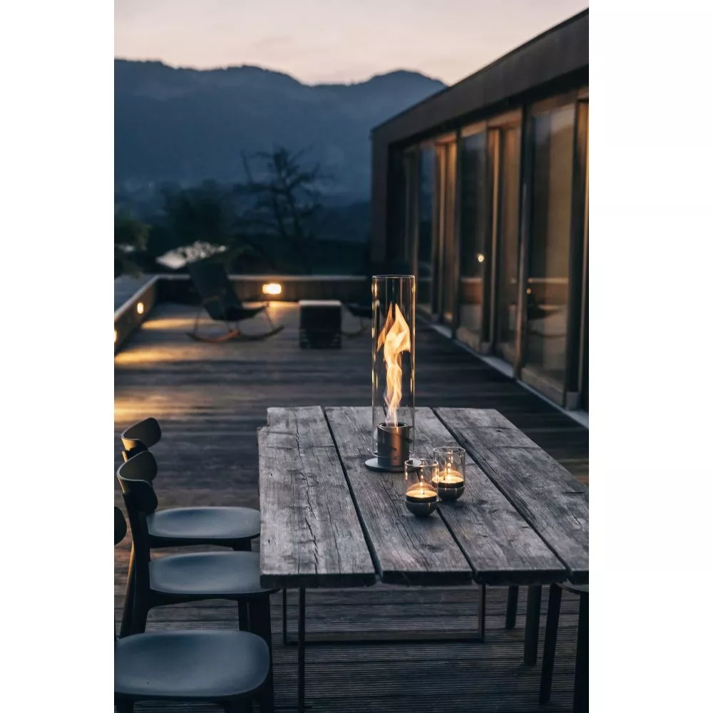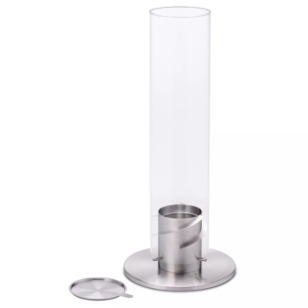 Das Höfats Spin Tischfeuer 120 – ein Feuertornado im dekorativen Glaszylinder zaubert feinste Lagerfeueratmosphäre auf deinen Balkon, die Terrasse oder ins Wohnzimmer. Ein absoluter Blickfang, der bei einem Grillabend mit Freunden, einer Gartenparty oder bei einem gemütlichen Fernsehabend auf keinen Fall fehlen darf. Seit Urzeiten zieht das Feuer die Menschen in seinen Bann. Mit dem Höfats Spin Tischfeuer geniesst du einmaliges Flammenspiel und wohlige Wärme. Das Tischfeuer sorgt dafür, dass dir auch bei kälteren Temperaturen warm wird. Es ist zu jeder Jahreszeit zu gebrauchen, ganz egal, ob du im Sommer bei milden Temperaturen, oder bei kalten Winterabenden eingekuschelt in einer Decke draussen sitzt.