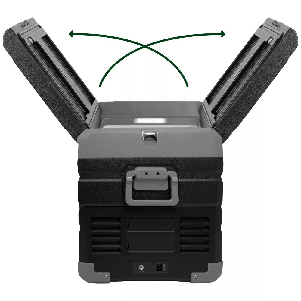 zwei Innenfächer (Dual Zone) mit individueller Temperaturregelung hochwertiger LG-Kompressor für überragende Kühlleistung dreistufiger Batterieschutz DC/AC-Betrieb stabile und stossfeste Konstruktion LCD-Display mit Touch-Bedienung APP zur Temperatureinstellung USB-Anschluss Ablass-Stopfen Innenbeleuchtung leiser Betrieb drehbarer Deckel ermöglicht beidseitige Öffnung (optional erhältliche) herausnehmbare Batterie mit einer Laufzeit von 4-24 Stunden |