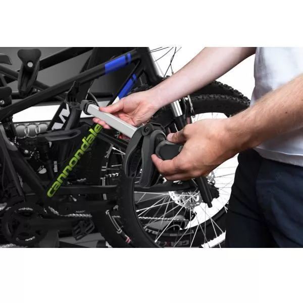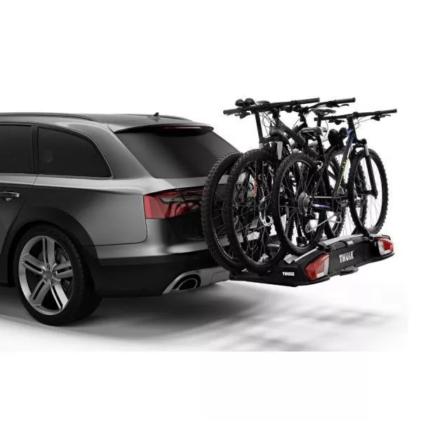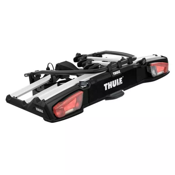 Der Anhängerkupplung Fahrradträger Thule VeloSpace XT 3 ist serienmässig für drei Fahrräder ausgestattet. Dank der integrierten Rückleuchten sind Sie auch bei Dunkelheit sicher unterwegs. Befestigt wird der Thule Veloträger auf der Anhängerkupplung Ihres Fahrzeugs. Solange der Spannheben nicht geschlossen ist, kann er noch eingestellt werden. Durch den extragrossen Abstand zwischen den Halterungen, können auch E-Bikes und schwere Mountainbikes einfach befestigt werden. Die Radschienen mit Überlänge ermöglichen den Transport von grossen Velos bis zu einem Radstand von 1300 mm. Extra lange Felgenhaltebänder mit Ratschenfunktion bietet eine einfache Befestigung von Rädern bis zu 4,7 Zoll. Somit ist der Transport auch für Fatbikes geleistet. Wenn es „klickt“, sind die abnehmbaren Fahrradhaltearmen im optimalen Drehmoment. Mit dem praktischen Abklappmechanismus mit Fusspedal erreichen Sie Ihren Kofferraum problemlos, selbst bei beladenem Anhängerträger. Zur Diebstahlsicherung werden Ihnen Schlösser mit geliefert, so können Sie die Räder auf dem Träger abschliessen.