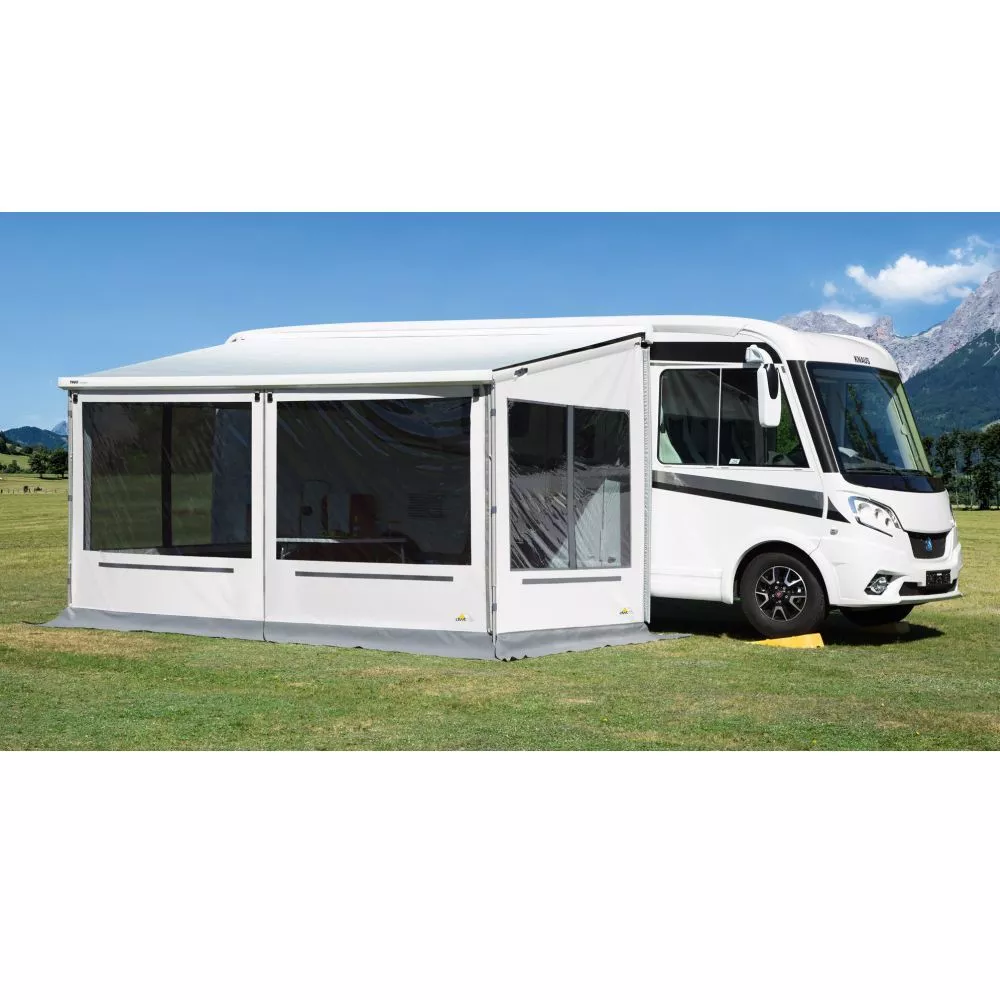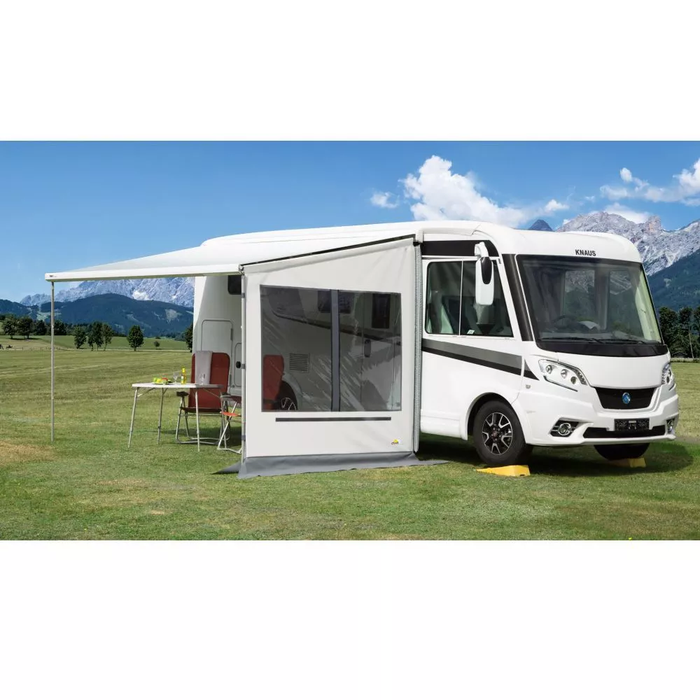Wenn du eine optionale Vorderwand dazu wählst, hast du ein robustes Markisenvorzelt und bist gerüstet für jegliche Wetterlage. Damit das entstehende Markisenvorzelt auch optimal mit dem Fahrzeug verbunden ist, können optional erhältliche Schaumstoffwulste und Andruckstangen fahrzeugseitig ergänzt werden. Um Seitenwände und die optionale Vorderwand verbinden zu können, ist ein optionaler Verbindungsadapter notwendig.