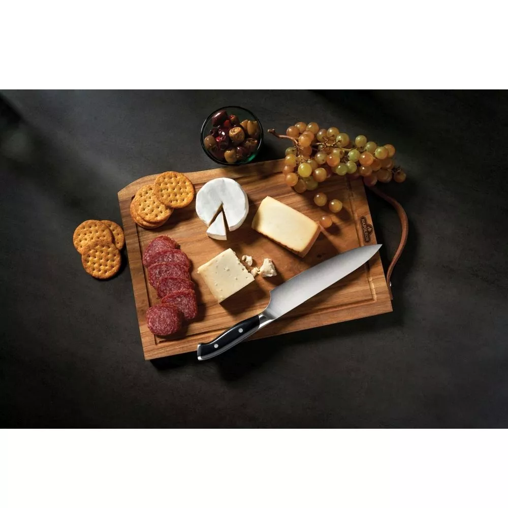Das Napoleon President´s Edition Schenidebrett aus rustikalem Akazienholz besitzt einen praktischen Griff aus echtem Leder und ist mit seiner grossen Arbeitsfläche von 30 x 40 cm ideal als Schneide- und Servierbrett geeignet.
