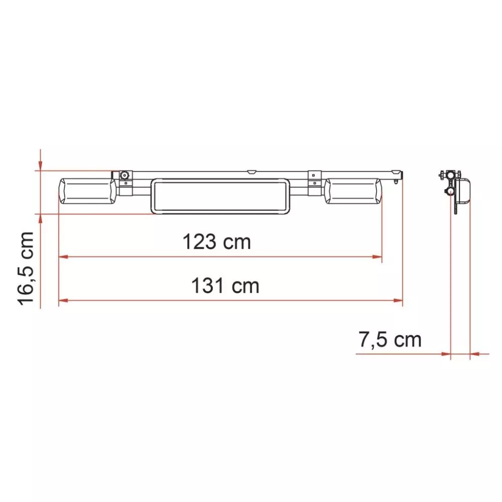 Die Fiamma Nummernschildleuchte lässt sich einfach und sicher an die Fiamma Carry-Bikes montieren. Notwendig ist die Nummernschildbeleuchtung, wenn die Fahrräder die Rückleuchten oder das Kennzeichen verdecken. Die Montage erfolgt am Auflagebügel mit den mitgelieferten Halterungen. Die Leistenstruktur dreht sich um 90°, um sowohl am geöffneten als auch am geschlossenen Auflagebügel positioniert werden zu können. Die solide Fiamma Nummernschildleuchte ist aus eloxiertem Aluminium hergestellt. Zudem ist im Lieferumfang ein 13-poliger Stecker für eine schnelle Verbindung mit der Fahrzeug-Elektroanlage enthalten.