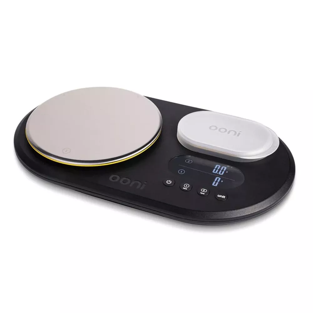Mit der dualen Digitalwaage von Ooni kannst du deine Pizzazubereitung optimieren. So gelingt dir jedes Mal der perfekte Teig. Dosiere alle Zutaten bis auf ein Zehntelgramm genau – ja, sogar die winzigen Mengen an Salz und Hefe – mit Hilfe der Plattformen aus gebürstetem Edelstahl, einer dualen LCD-Anzeige zur gleichzeitigen Anzeige beider Plattformmessungen sowie einer passgenauen Messschale für Hefe oder Kräuter.