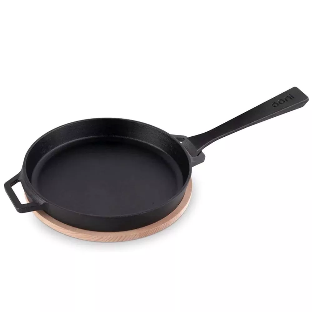 Die Ooni Pfanne aus Premium-Gusseisen eignet sich ideal für die Zubereitung von Fleisch, Meeresfrüchten, Gemüse und vielem mehr in deinem Pizzaofen. Diese Gusseisenpfanne wird mit einem nachhaltig hergestellten Servierbrett aus Holz geliefert und verfügt über einen speziell entwickelten, abnehmbaren Gusseisengriff. So kannst du brutzelnd heisse Speisen mühelos vom Ofen auf den Tisch bringen. Die Pfanne besteht aus besonders hochwertigem und langlebigem Gusseisen und überzeugt mit einer ausgezeichneten Wärmespeicherung. Die perfekte Allzweckpfanne! Ideal für die Verwendung in Ooni Öfen sowie über offenem Feuer und zu Hause auf dem Herd oder Kochfeld.
