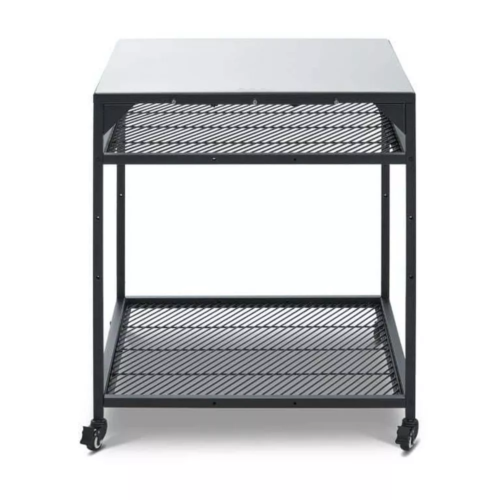 Der Ooni Modultisch V2 eignet sich ideal als Standfläche für deinen Pizzaofen und dein Zubehör. Alle Ooni Pizzaofen-Modelle passen wunderbar auf die Edelstahl-Arbeitsfläche. Der Tisch wird aus robustem pulverbeschichtetem Karbonstahl hergestellt. Er verfügt auch über zwei höhenverstellbare Einlegeböden sowie integrierte Haken für deine Ooni Pizzaschieber und das Zubehör. Dank der zwei feststellbaren Rollen steht dein Tisch beim Kochen sicher.