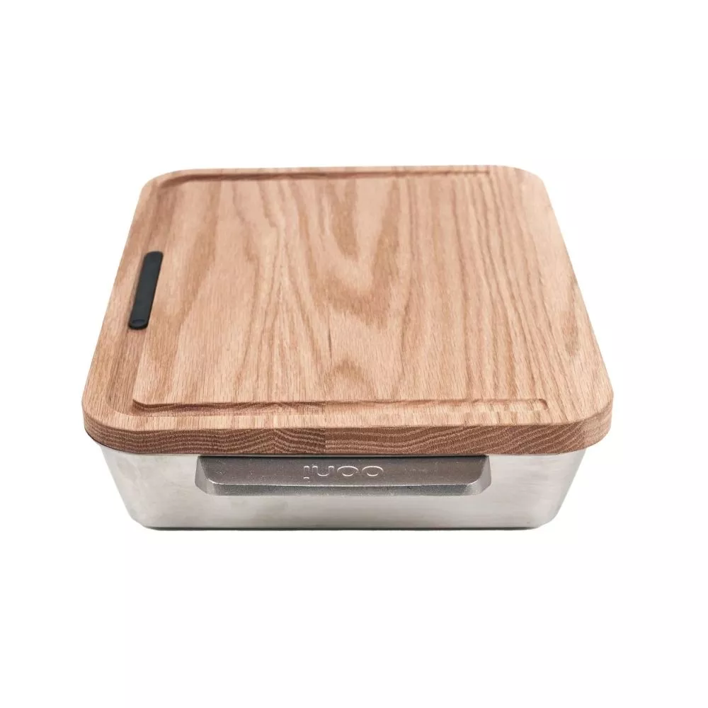 Die Ofenform besteht aus einem einzigen Stück Edelstahl in Profiqualität und ist unglaublich vielseitig, sodass du Hühnchen, Fleisch, Fisch und Gemüse perfekt zubereiten kannst. Dieses Ooni-Zubehör enthält ausserdem ein Schneidebrett aus Weisseiche mit einem innovativen schrägen Design. Seine Rillen fangen all deine köstlichen Bratensäfte für leckere Saucen auf. Dank des abnehmbaren Silikonstöpfsels im Tranchierbrett kann der Bratensaft einfach abfliessen.