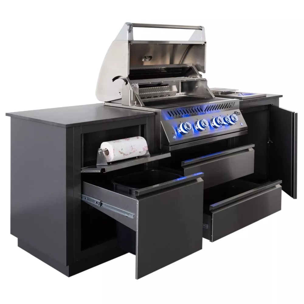 Napoleons kompakte Outdoor-Küche OASIS 105 eignet sich perfekt für jeden Aussenbereich. Sie bietet die optimale Grösse an Stauraum und Arbeitsfläche sowie den grossen Napoleon 700-Series 32 Zoll Einbaugrill, welcher mit einer Garkammer-Beleuchtung ausgestattet ist.