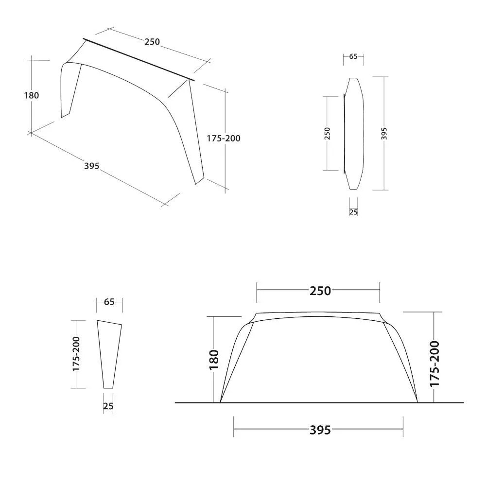 Grösse: 395 x 65/25 x 175 – 200 cm (BxTxH)