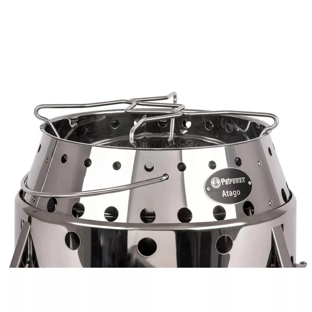 Das Edelstahl Kochkreuz passt optimal auf den Petromax Atago Campinggrill und bietet eine sichere Standfläche für Töpfe, Pfannen und Dutch Oven.