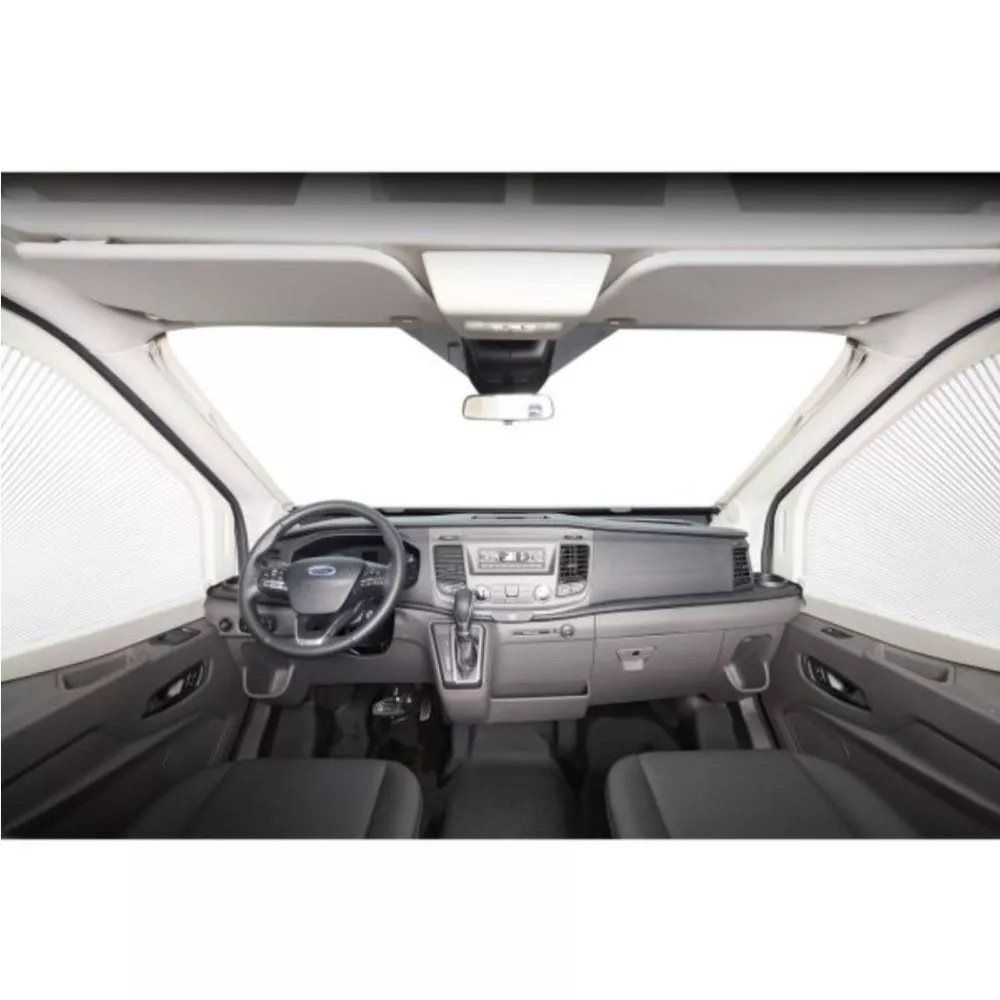 Die doppelt plissierte Frontscheibenverdunkelung Dometic FR 400 wurde speziell für den Ford Transit (V363) ab dem Facelift Baujahr 2019 enwickelt.