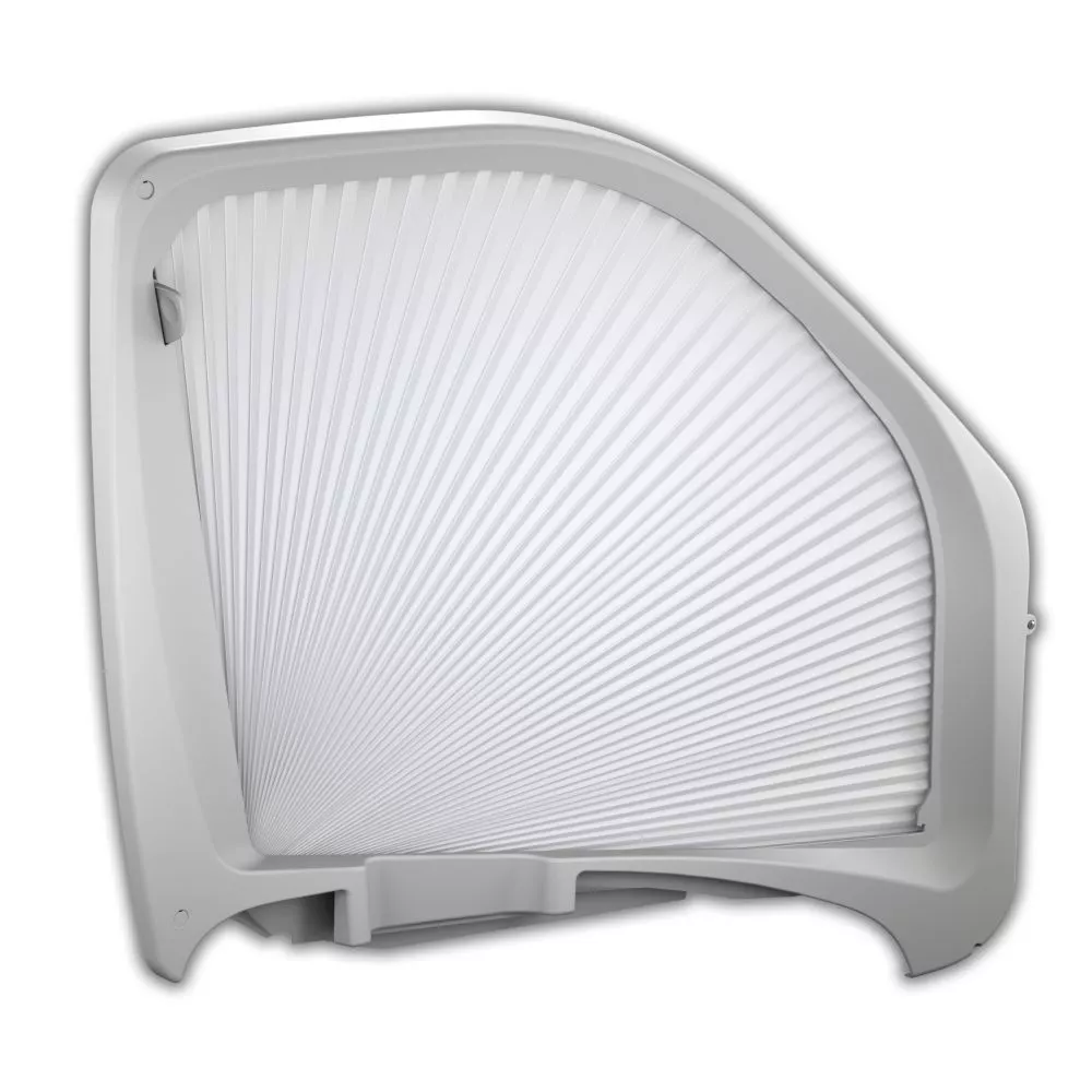 Willst du mehr Privatsphäre in der Fahrerhauskabine? Dann sind die hochwertigen Dometic SP 300 Seiten-Plissees genau das Richtige. Das doppelt plissierte Duette Wabenmaterial besitzt zugleich eine hervorragende Isolierwirkung – Hitze und Kälte bleiben draussen. Die Montage ist im Handumdrehen erledigt, ohne Demontage der Türkomponenten: einfach den Rahmen anbringen und die Verdunkelung dabei festhalten, fertig! Das Warenmaterial ist zu 100% lichtundurchlässig und schützt zuverlässig vor fremden Blicken, Sonne und Tageslicht.