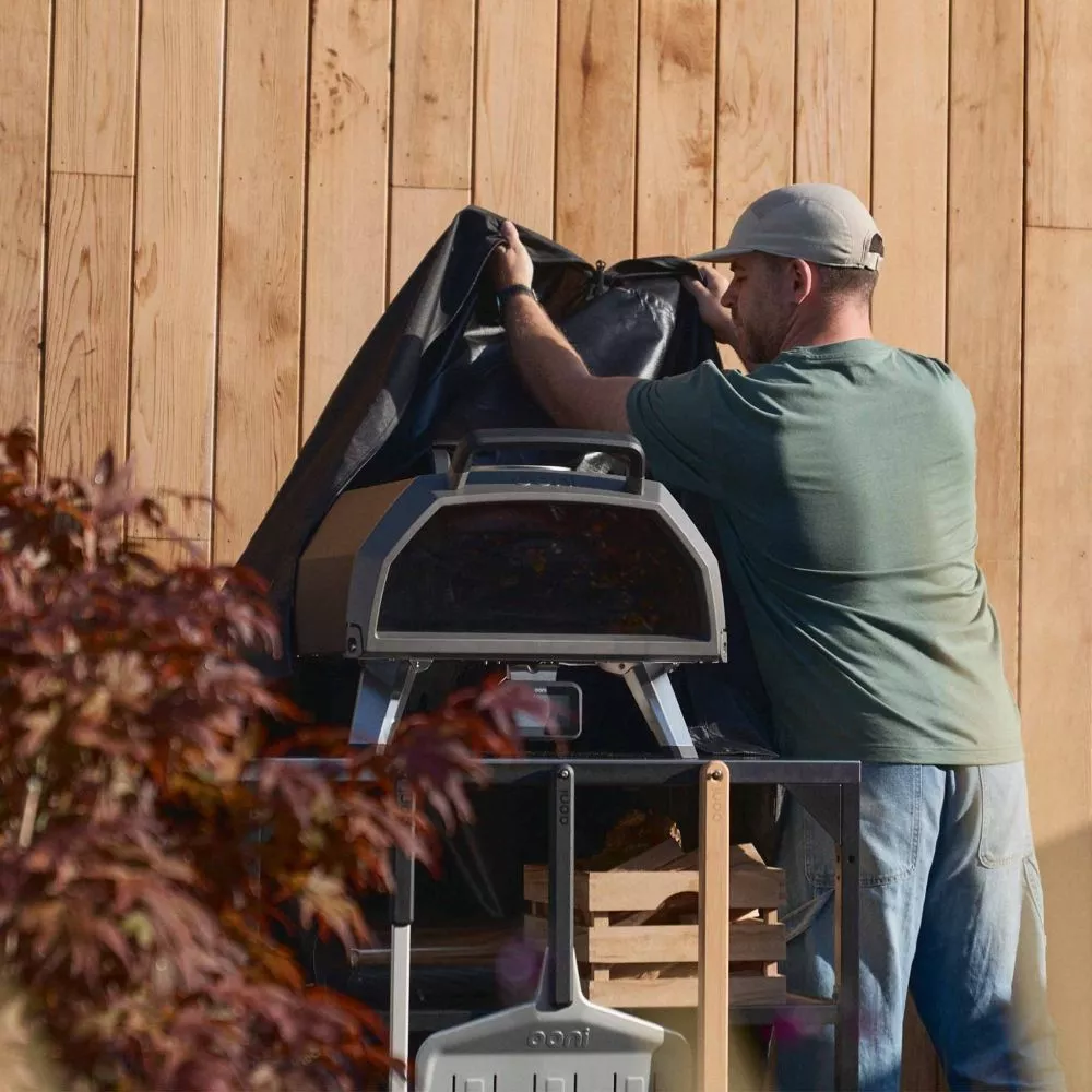 Schütze deine Ooni Pizza Outdoorküche mit einer Schutzhülle aus wasserdichtem, UV-beständigem Polyester. Die Abdeckhaube lässt sich einfach übder den Modultisch Large mitsamt dem Pizzaofen ziehen und bietet optimalen Schutz vor Regen, Schnee, Sonneneinstrahlung, Pollen, Verschmutzungen und Beschädigungen.