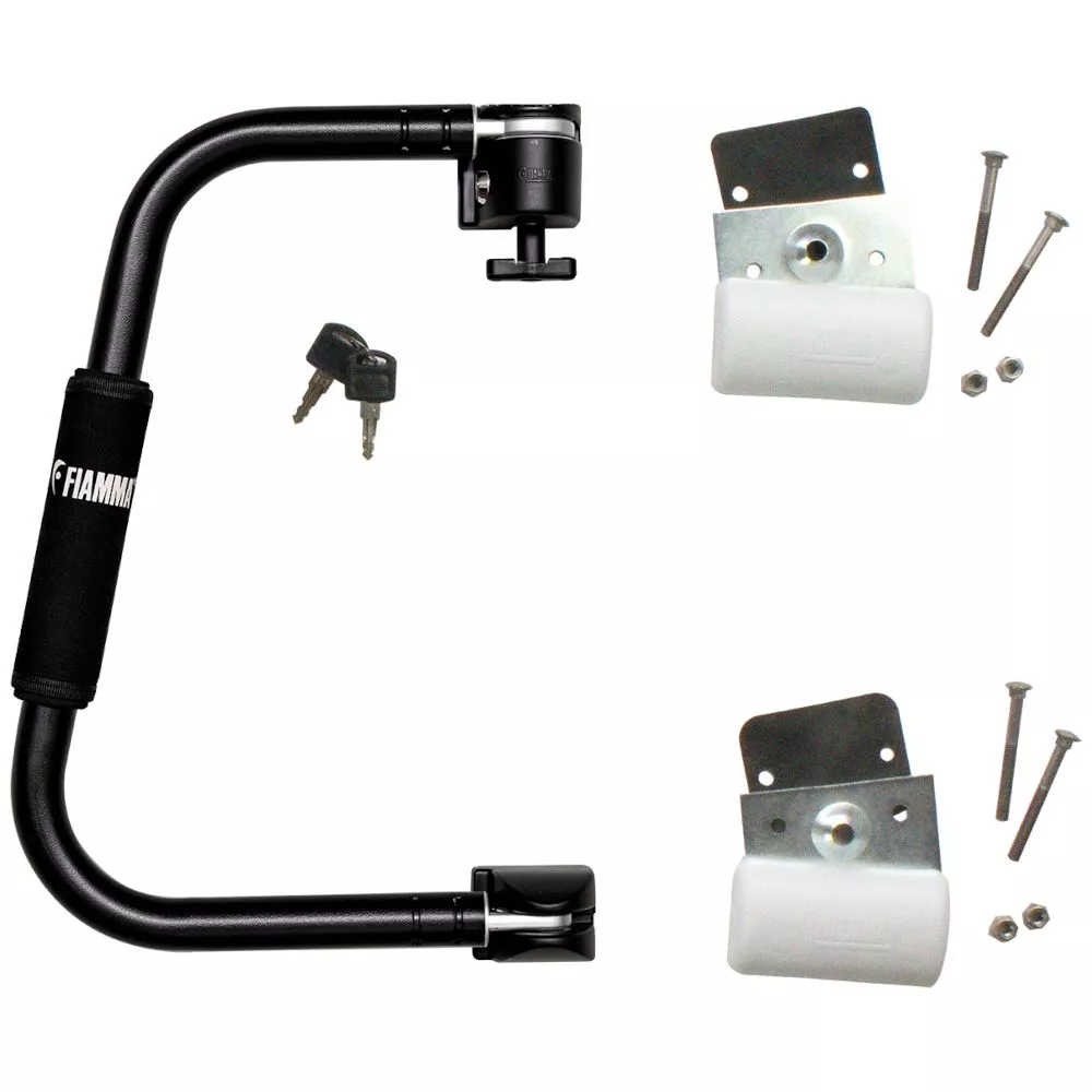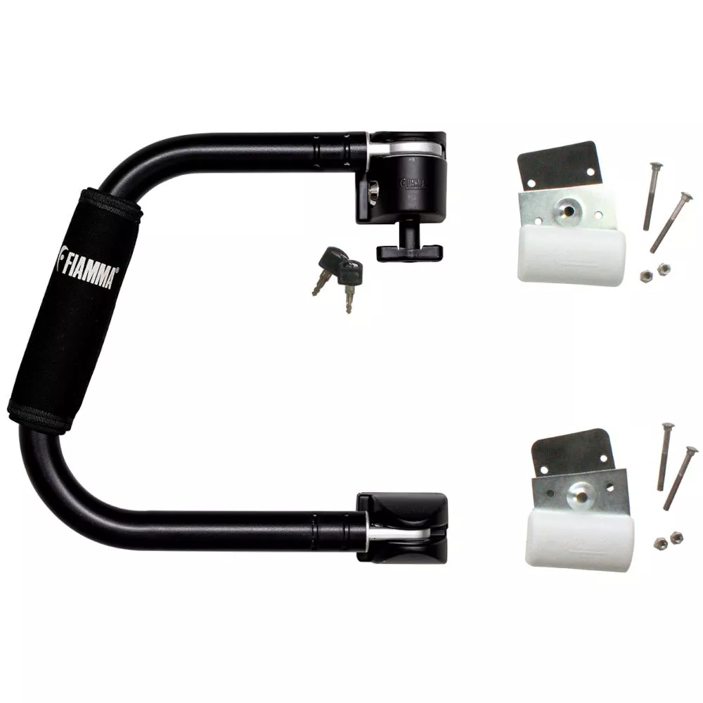 Mit der Fiamma Security Kombination aus Sicherheitsbügel und Einstiegshilfe in deep black schützt du dein Fahrzeug zusätzlich vor Einbrüchen. Gleichzeitig hast du eine Ein- und Ausstiegshilfe, auf der du dich beim Betreten und Verlassen deines Fahrzeugs abstützen kannst. Während der Fahrt liegt der Security elegant und platzsparend an der Fahrzeugwand. Indem er mit dem mitgelieferten Schloss verriegelt wird schützt er am Fahrzeug anliegend vor Einbrüchen. Dank dem Schloss wird ausserdem ein zufälliges Öffnen während der Fahrt verhindert. Passend für alle Türen mit rechter und linker Öffnungsrichtung.
