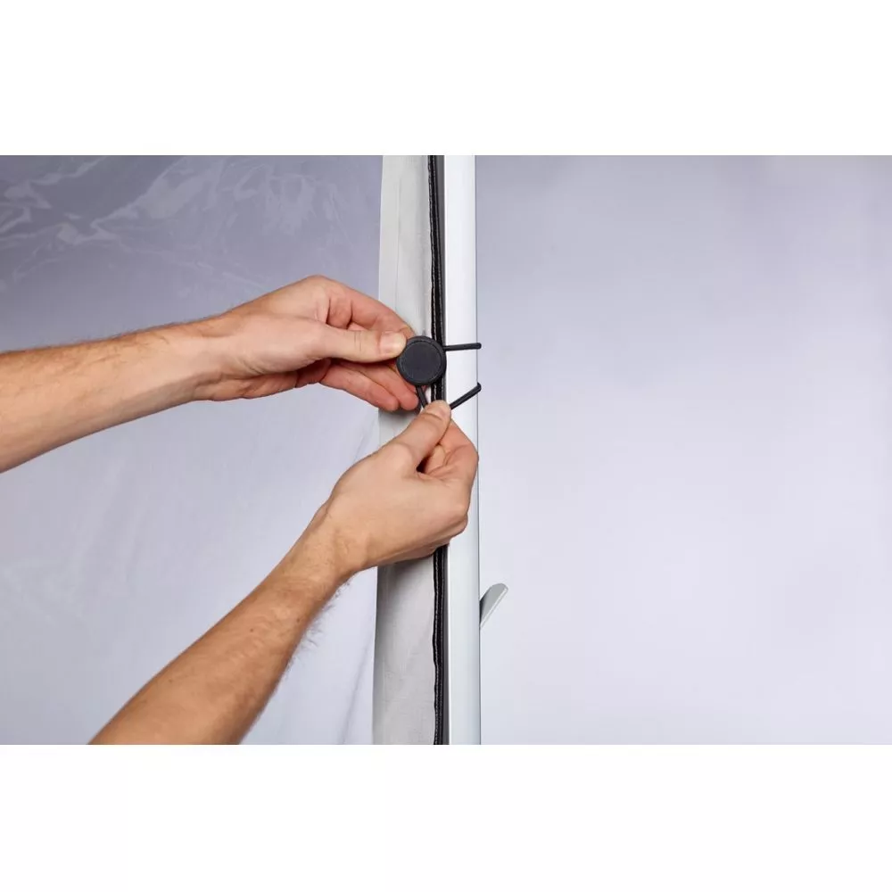 - praktische Verbindungen stellen eine einfache Befestigung der Seitenwand am Stützfuss der Markise sicher