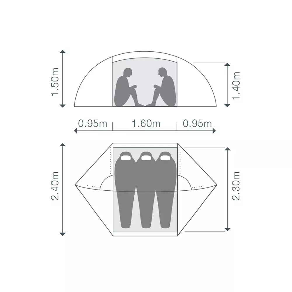 Maximalgewicht: Aussenzelt, Innenzelt, Gestänge, alle in der Verpackung enthaltenen Komponenten: Heringe, zusätzliche Abspannschnüre und Ersatz- beziehungsweise Reparaturteile