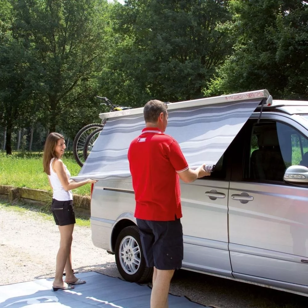Die Markise Fiamma F35 Pro 220 schafft dir ca. 4,5 m² Schattenfläche direkt vor deinem Fahrrzeug. Sie ist für den Anbau an den Wohnwagen, Campingbus, Minivan, Geländewagen oder Kombi geeignet. Dank der verschiedenen Halterungen kannst du die Markise wahlweise an der Fahrzeugwand, am Dachträger oder an der Kederschiene anbringen.