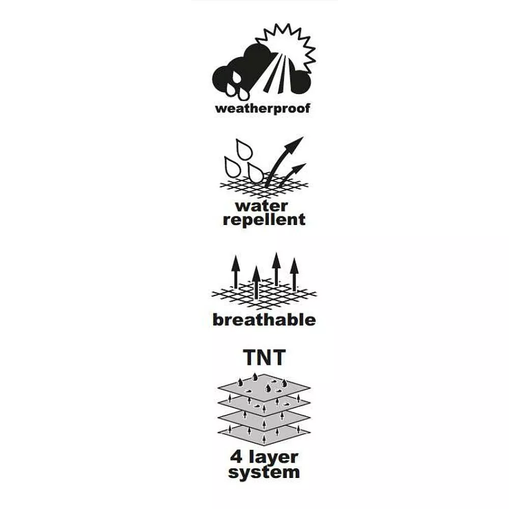 Hergestellt aus hochwertigem widerstandsfähigen TNT-Gewebe (atmungsaktiv, UV-stabil, wasserabweisend). Das 4-schichtige Planensystem garaniert einen wirksamen Schutz des Fahrzeugs über das ganze Jahr.