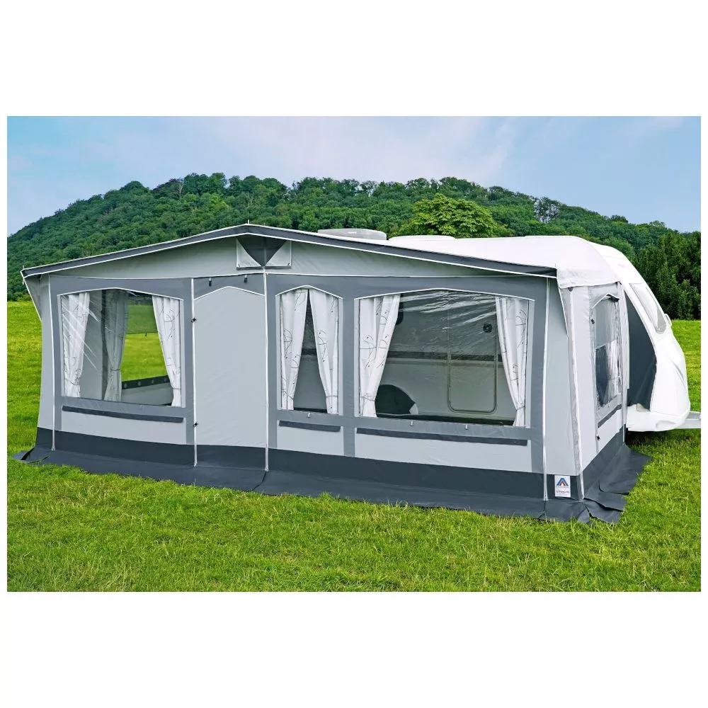 Du bist auf der Suche nach einem geräumigen Wohnwagenvorzelt zum Reisen oder für’s Saisoncmapen? Dann bist du beim Hahn Zelte Lübeck genau richtig gelandet! Denn das robuste PVC-Dach und das TenCate Wandmaterial sind auch längere Standzeiten von April bis Oktober problemlos geeignet.