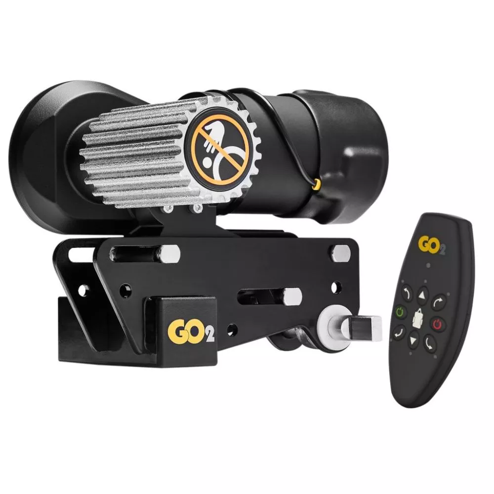 Die bewährte Rangierhilfe GO2 wurde weiterentwickelt und optimiert. Sie bewegt mühelos Wohnwagen und Anhänger bis zu einem Gesamtgewicht von 1.800 kg. Die neue Fernbedienung liegt optimal in der Hand und lässt sich intuitiv bedienen. Fahrten geradeaus, um die Kurve oder Drehen auf der Stelle sind mühelos möglich. Zudem werden während der Geradeausfahrt Richtungskorrekturen ohne zu stoppen ermöglicht. Das Symbol eines Wohnwagens erleichtert dabei das Rangieren.