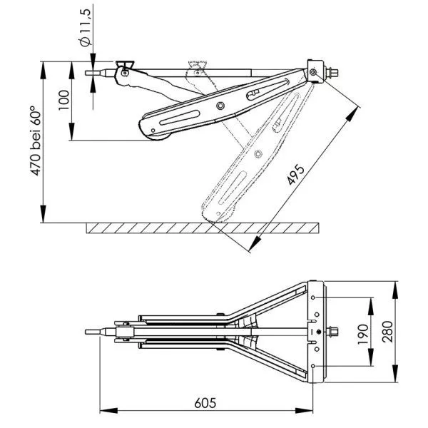 Am Fahrgestell vorgesehene Aufnahmelaschen erlauben eine schnelle und einfache Montage. Eine Seite wird gesteckt, die andere Seite wird mit zwei Schrauben am Caravanboden befestigt. - Stabil